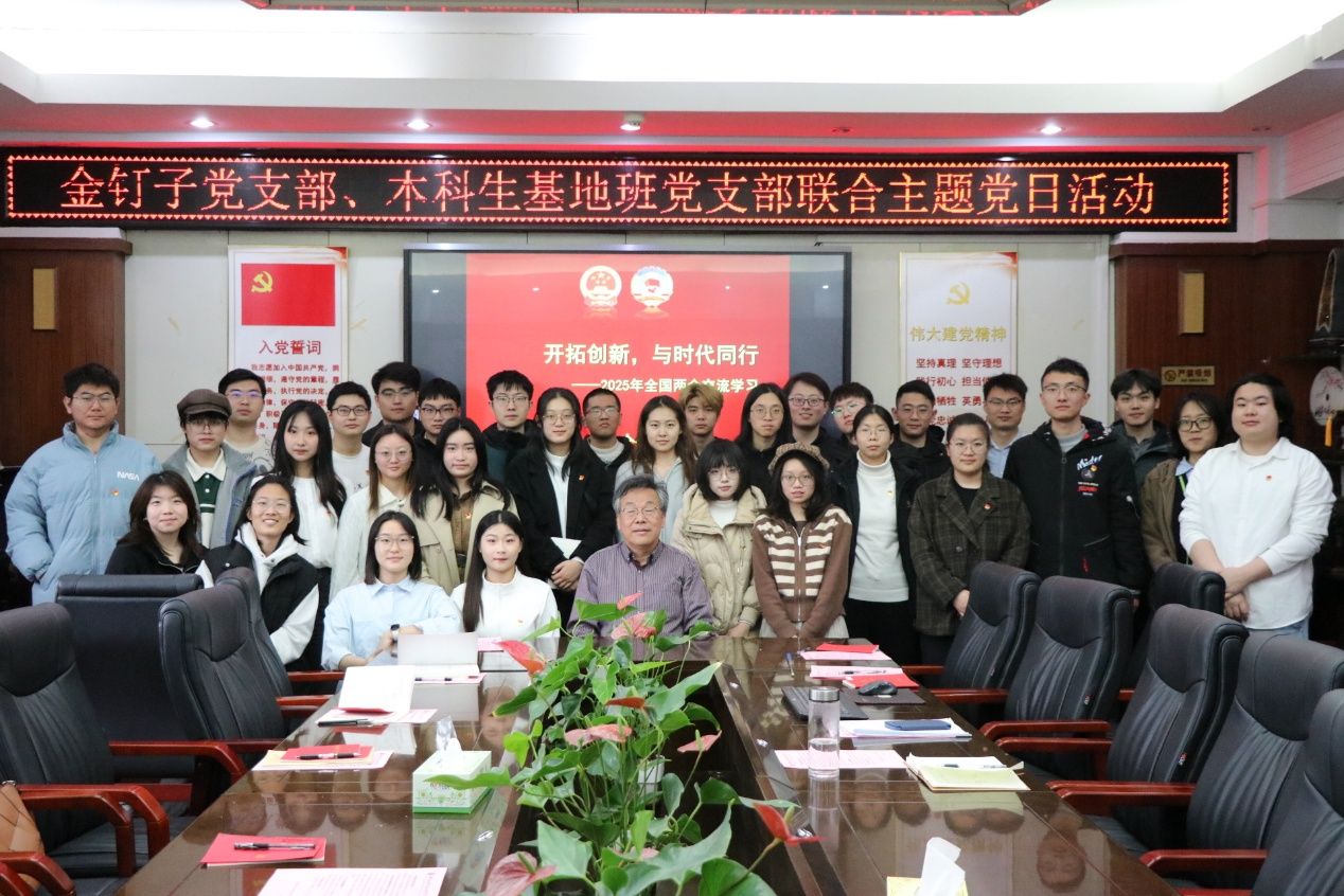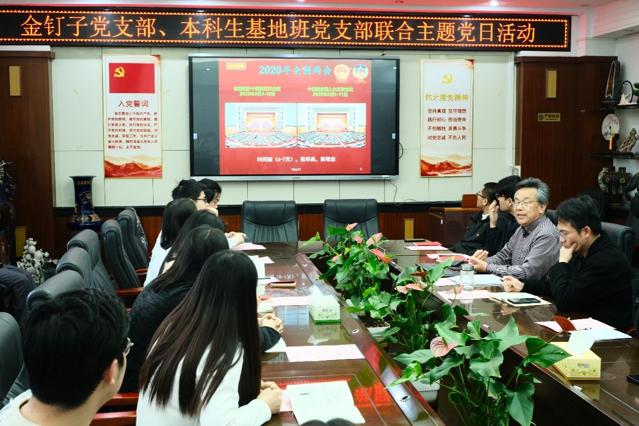 2025年3月28日,国产探花 金钉子党支部、本科生基地班党支部在主楼308会议室联合举办3月主题党日活动。特邀第十三届、十四届全国政协委员童金南教授列席主题党日,主讲2025年全国两会精神。主题党日由金钉子党支部副书记施翌主持。